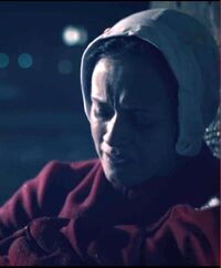 When she is walking with Offred on the way back from grocery shopping, she reveals that she used to be a college professor and taught cellular biology. She was also in a same-sex marriage, which made her a prominent target for the regime. While most college professors and "Gender Traitors" were sent away for their "sins", she says she was spared because she has "two working ovaries." She also reveals that she and her wife had a son together, whom she speculates would be five years old during the series' timeline. She tells Offred that her wife and son had Canadian passports and thus were able to escape while she herself did not. She also reveals she is a member of Mayday, though she does not refer to the resistance group by name.[1]